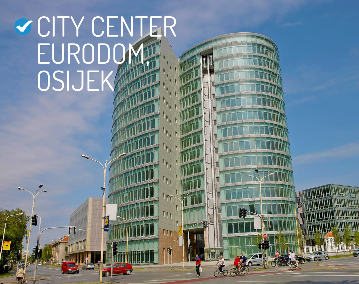 Eurodom in Osijek which is new bussines and social center od Easte Croatia. Complex of 80.000 GLA consists of A class office tower of 12 upper floors with 13 elevators. There are more of 2100 eployees and some of the high proflie tenants are: A1, Span, IBM, In2, Transcom, Telemach, TUV Nord, Zaba, Intesa SanPaolo, Endava, HEP, Valcon, Infobip etc. Center has also small “community-oriented” shopping centre with 800 garage park, then retail space and strong F&B with restaurant, Mlinar caffe, Hedonist and Atrij caffe bar, then public, cultural, health and education facilities ( Algebra University, four Polyclinics, even Administrative Court). This multifunctional type of building in city centre is the future of real estate.